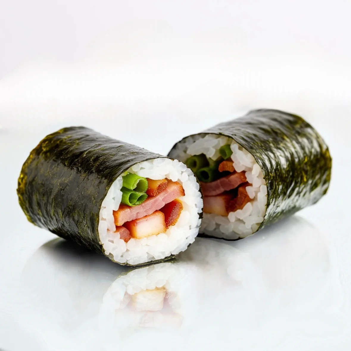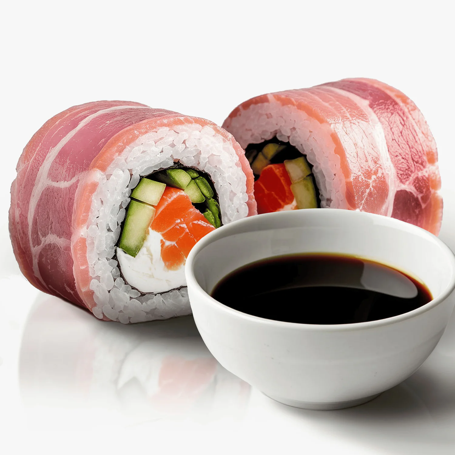 Жаренный ролл. Бекон Курица копчёная Помидор Майонез Лук зеленый