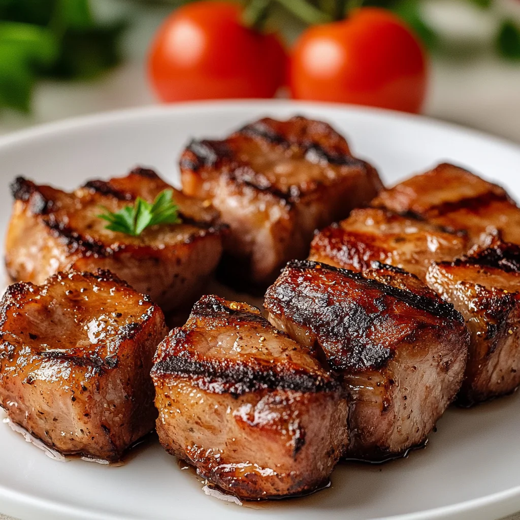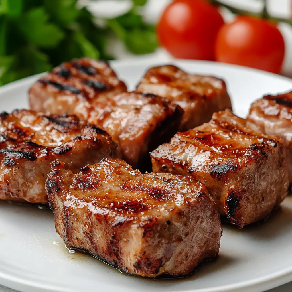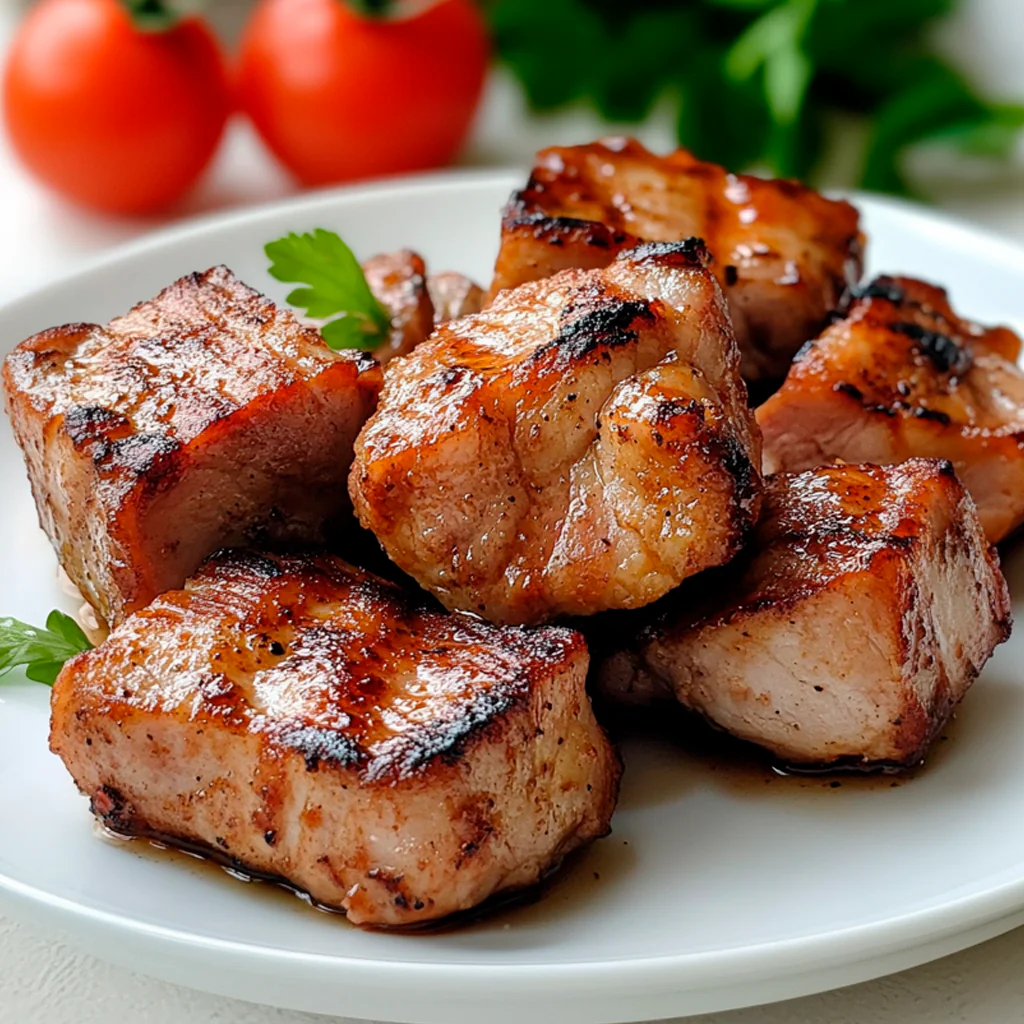 Нежные кусочки свиной мякоти в специальном фирменном маринаде.