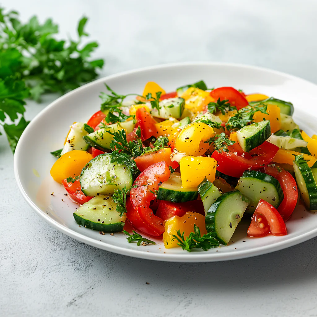 Соус цезарь, огурец, салат Айсберг, болгарский перец, помидоры