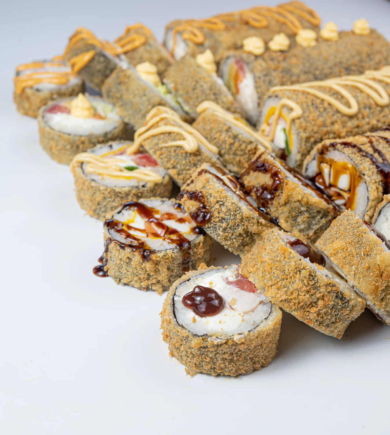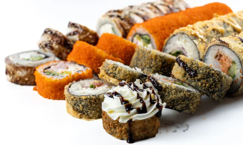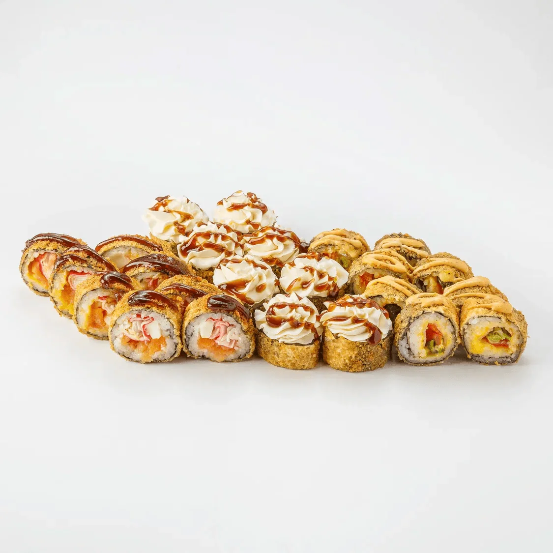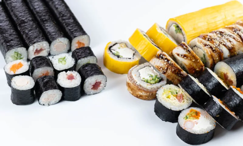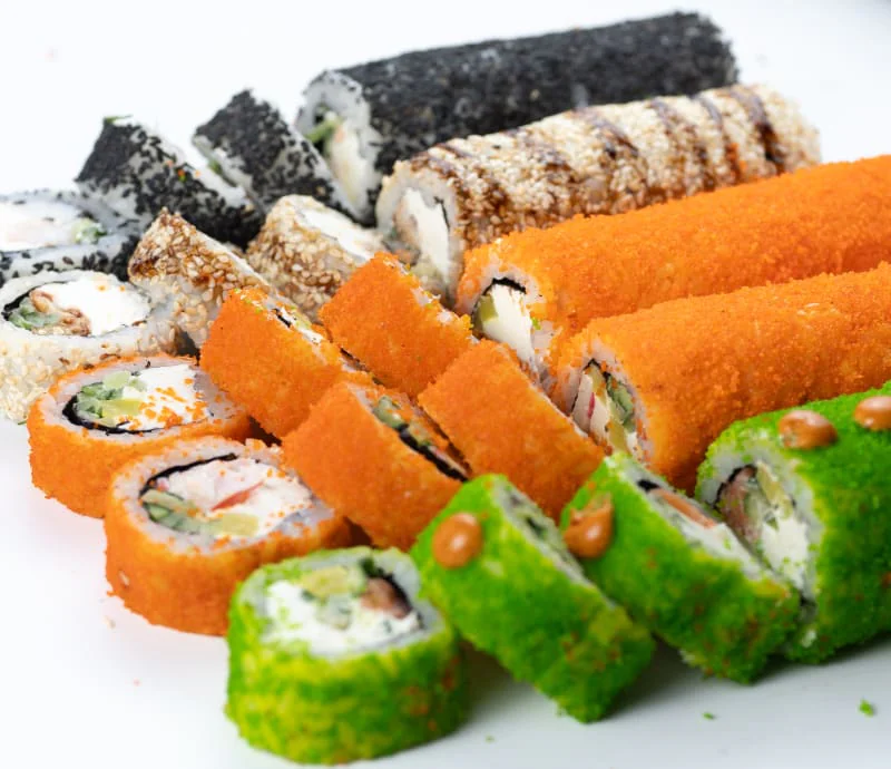 Кинсин, Нагината, Гесенай, Калифорния с крабом, Калифорния с креветкой, Калифорния с лососем, Классический с лососем, Классический с Копчёным лососем, Классический с угрём, Классический с тобикой, Классический с крабом, Классический с огурцом
