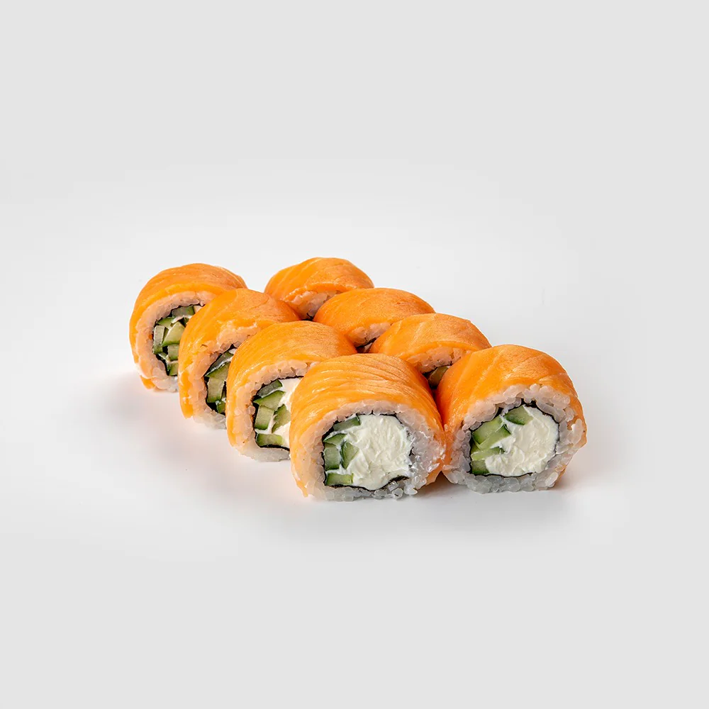 Лосось, тобико ,дайкон маринованный, огурец, сливочный сыр