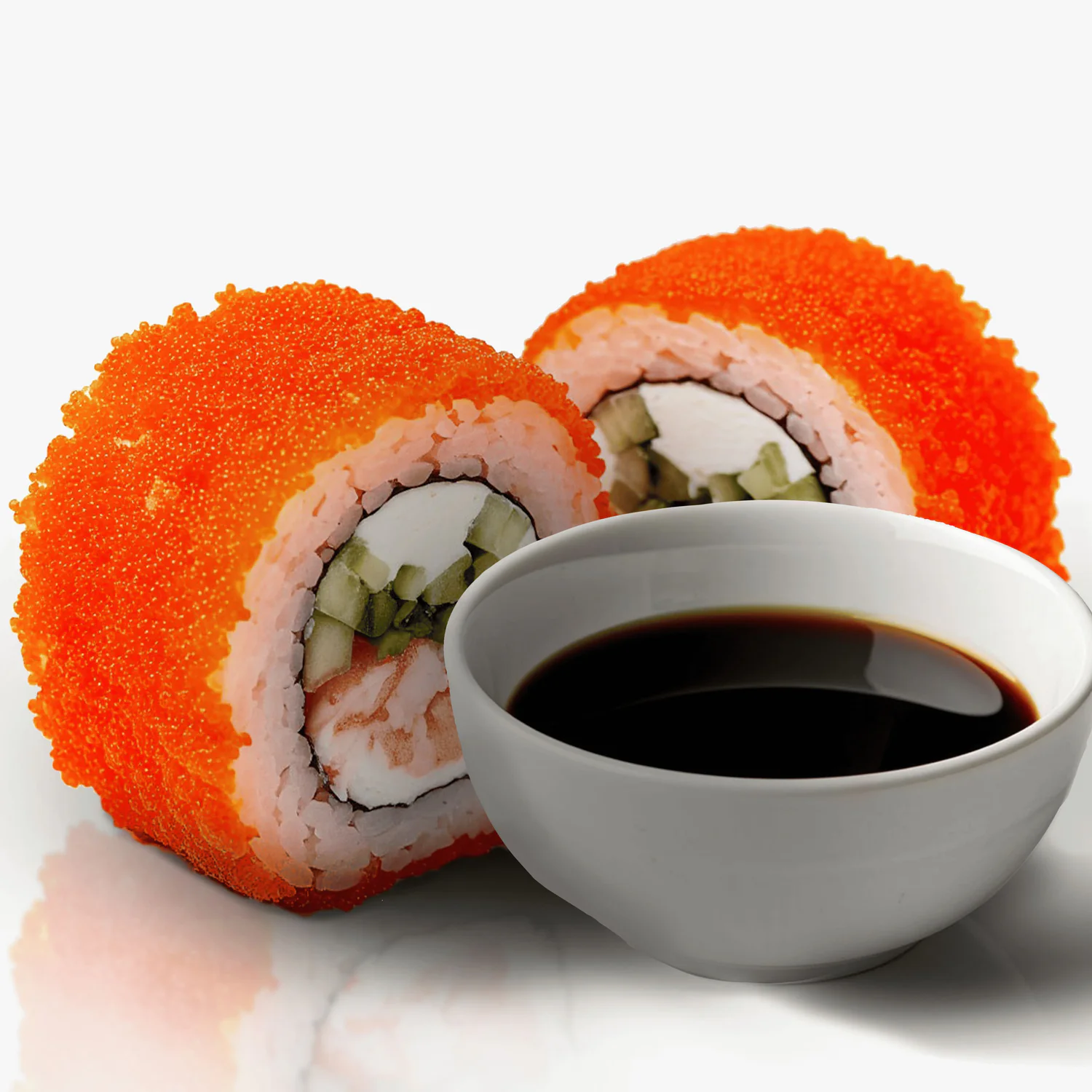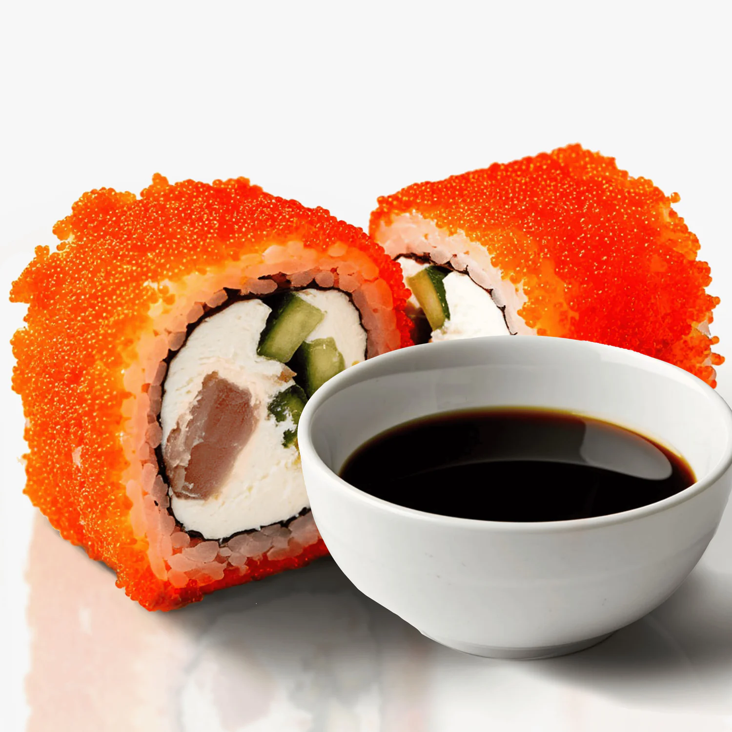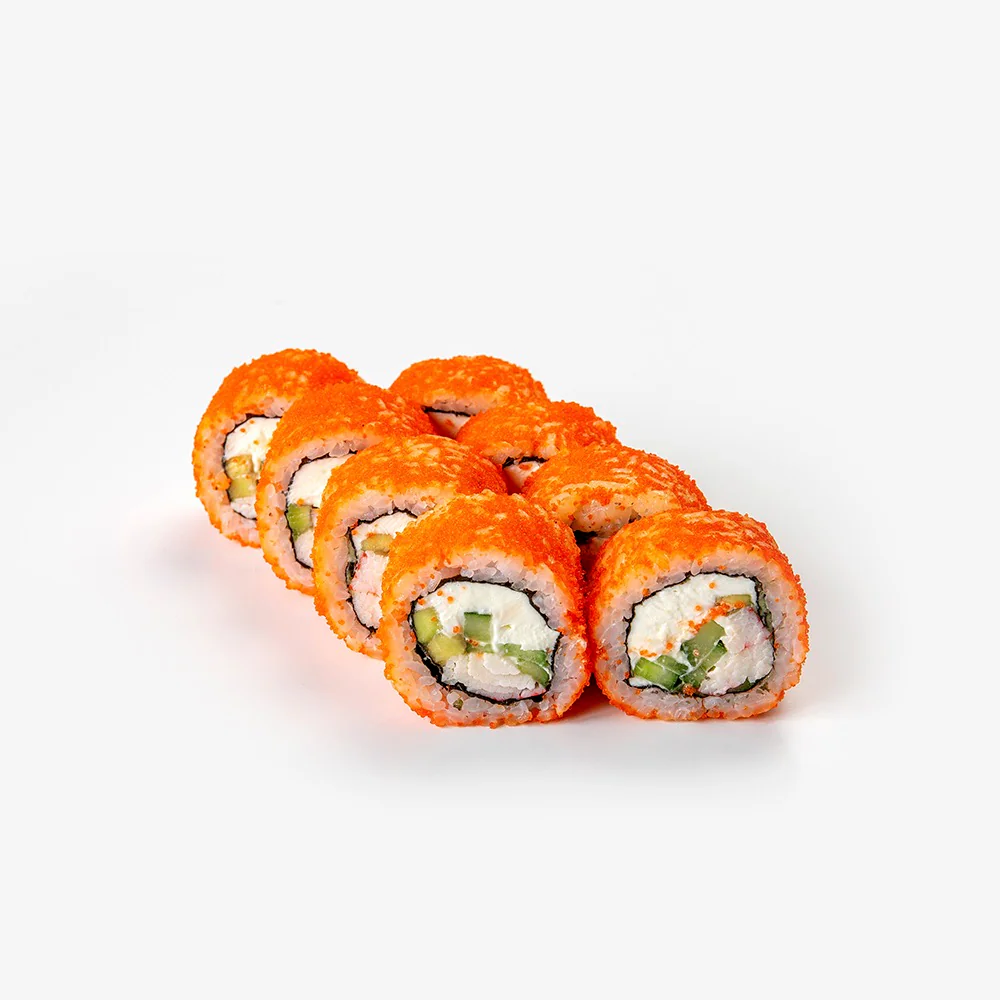 Имитация краба, тобико , дайкон маринованный, огурец, сливочный сыр