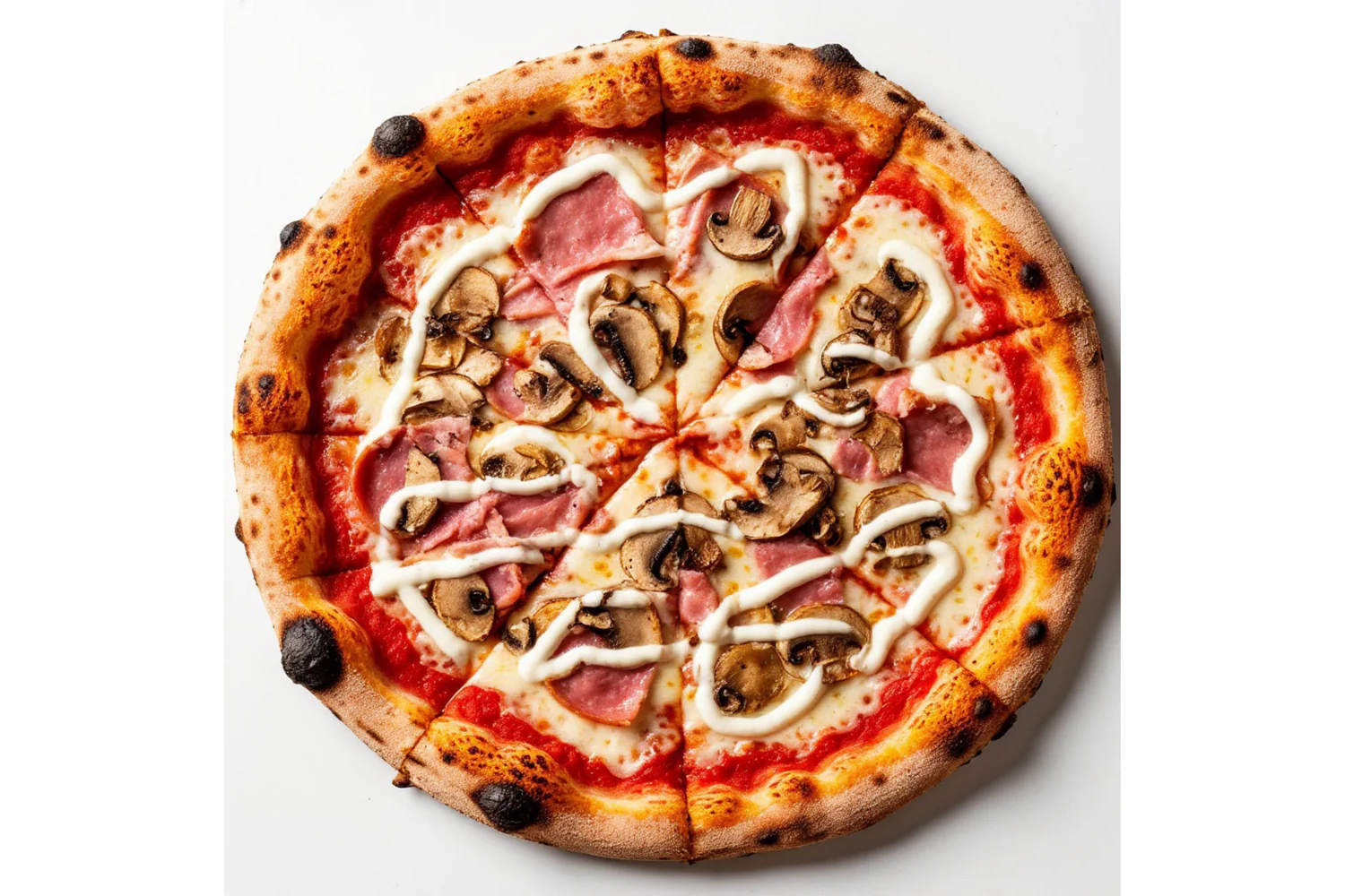 Неаполитанская пицца. Состав - моцарелла, ветчина, шампиньоны, фирменный соус. Диаметр пиццы 30 см.
