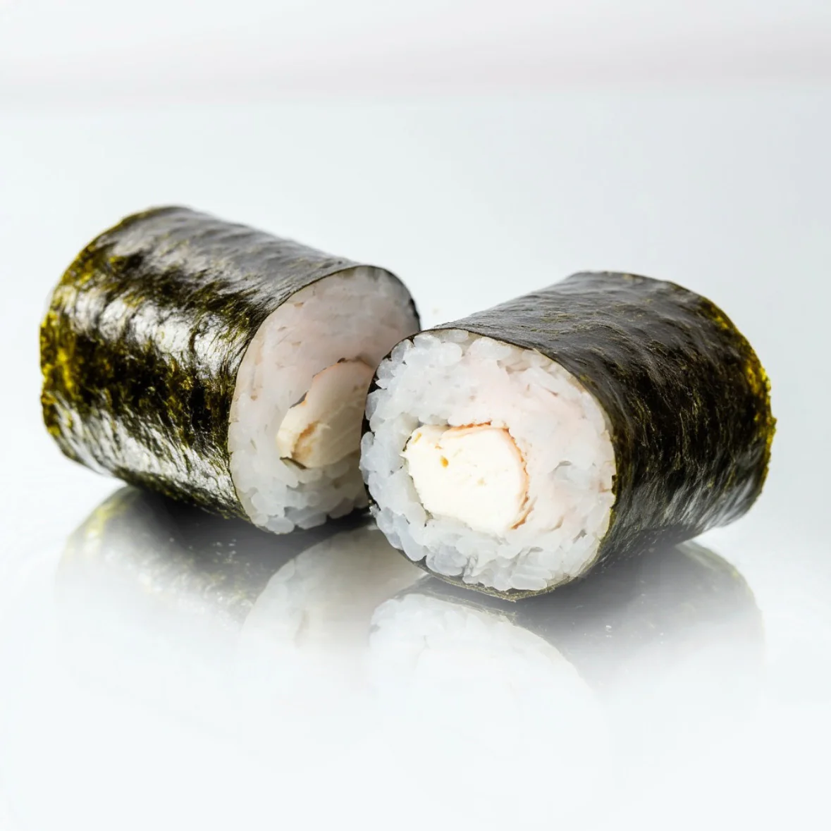 Мясо королевской креветки, тобико, дайкон маринованный, огурец, творожный сыр