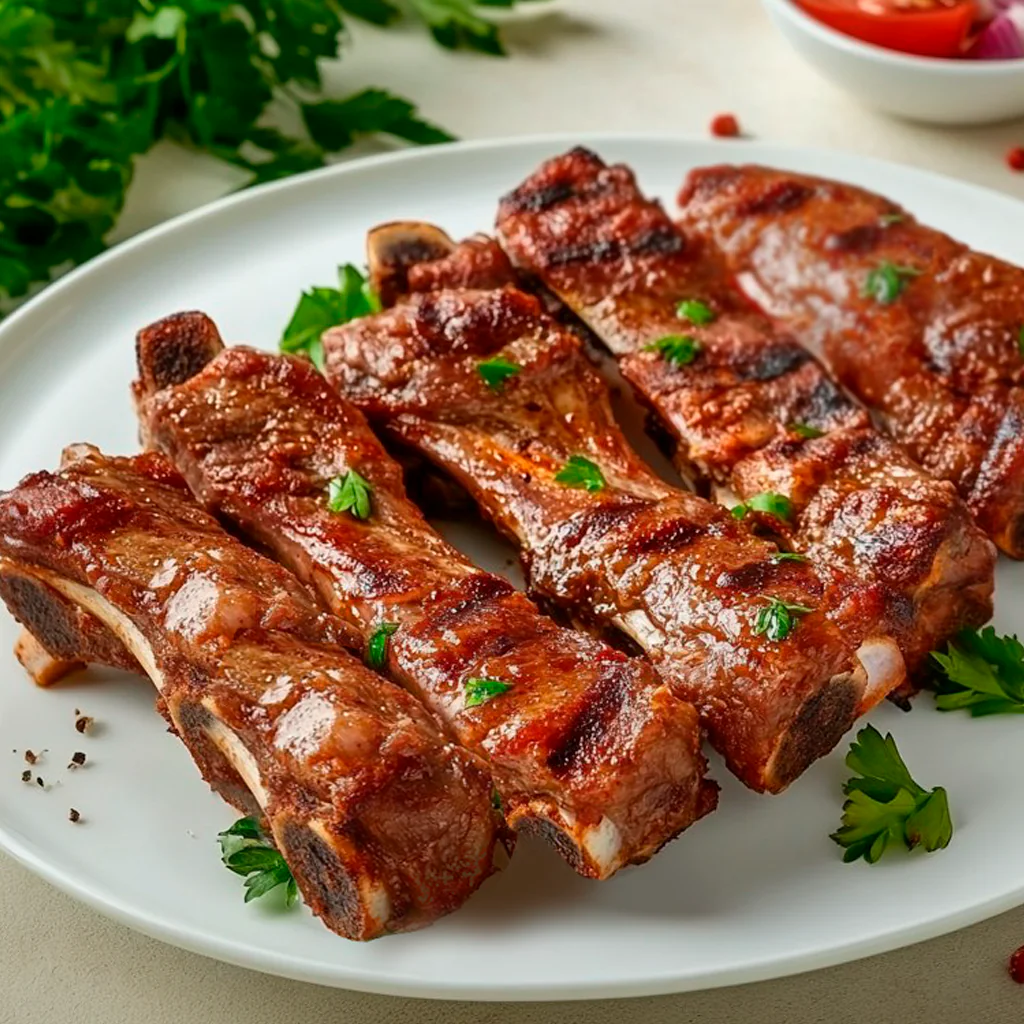 Мякоть свиных ребрышек, овощи на гриле, помидор, салат Айсберг в перемешку с пекинской капустой, сыр Чеддер (в растопленном виде), лук красный, соус BBQ, соус фирменный