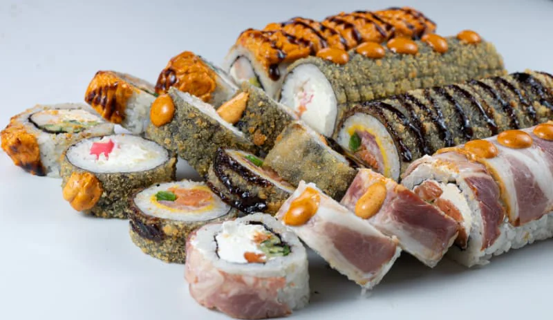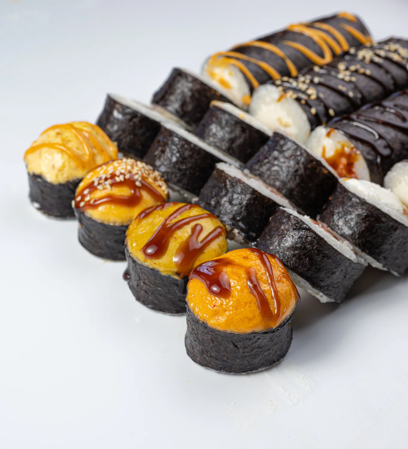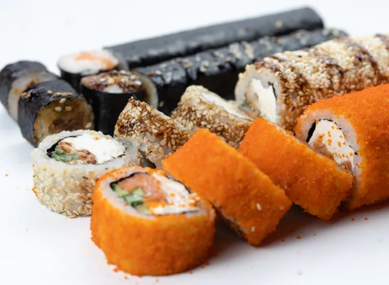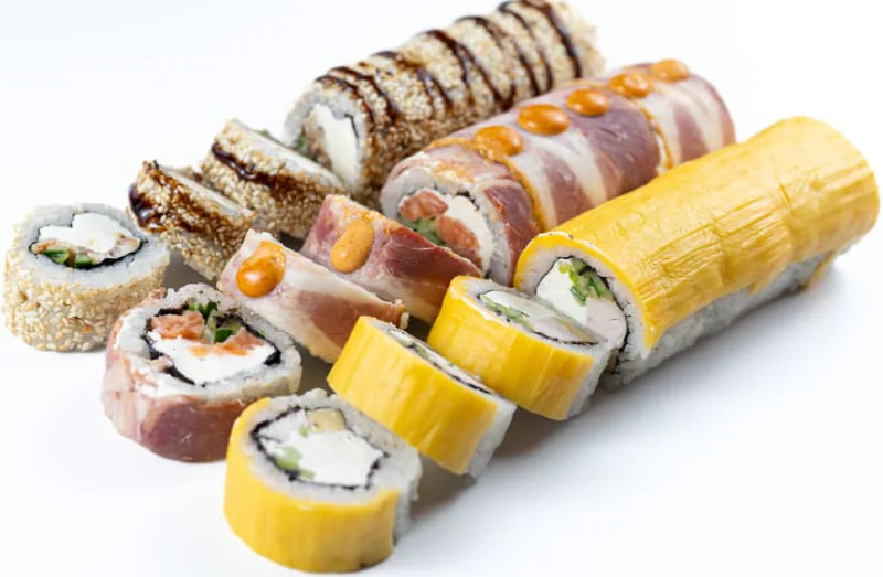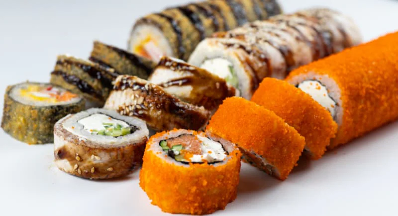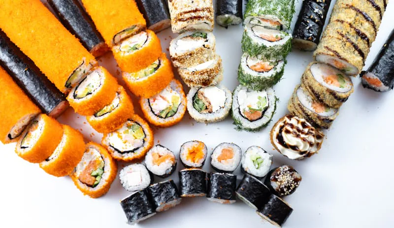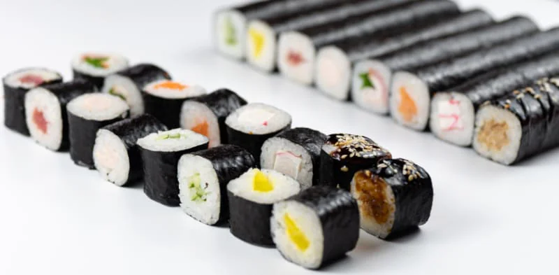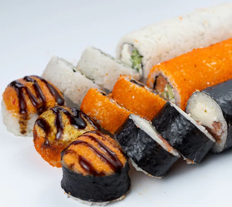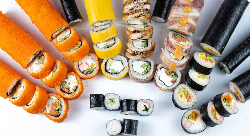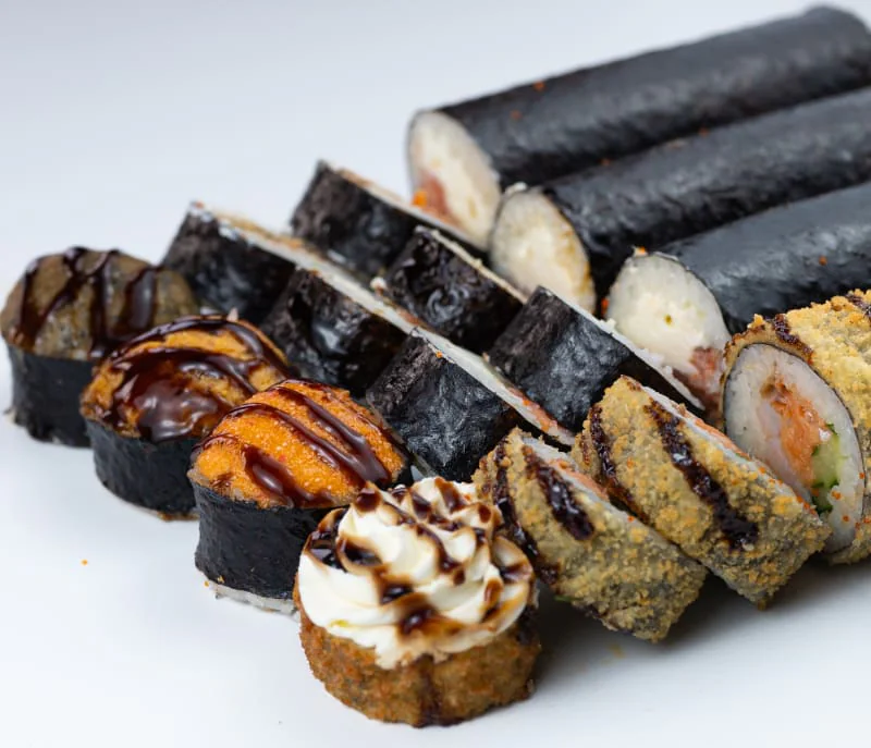 Кинсин, Нагината, Гесенай, Калифорния с крабом, Калифорния с креветкой, Калифорния с лососем, Классический с лососем, Классический с Копчёным лососем, Классический с угрём, Классический с тобикой, Классический с крабом, Классический с огурцом