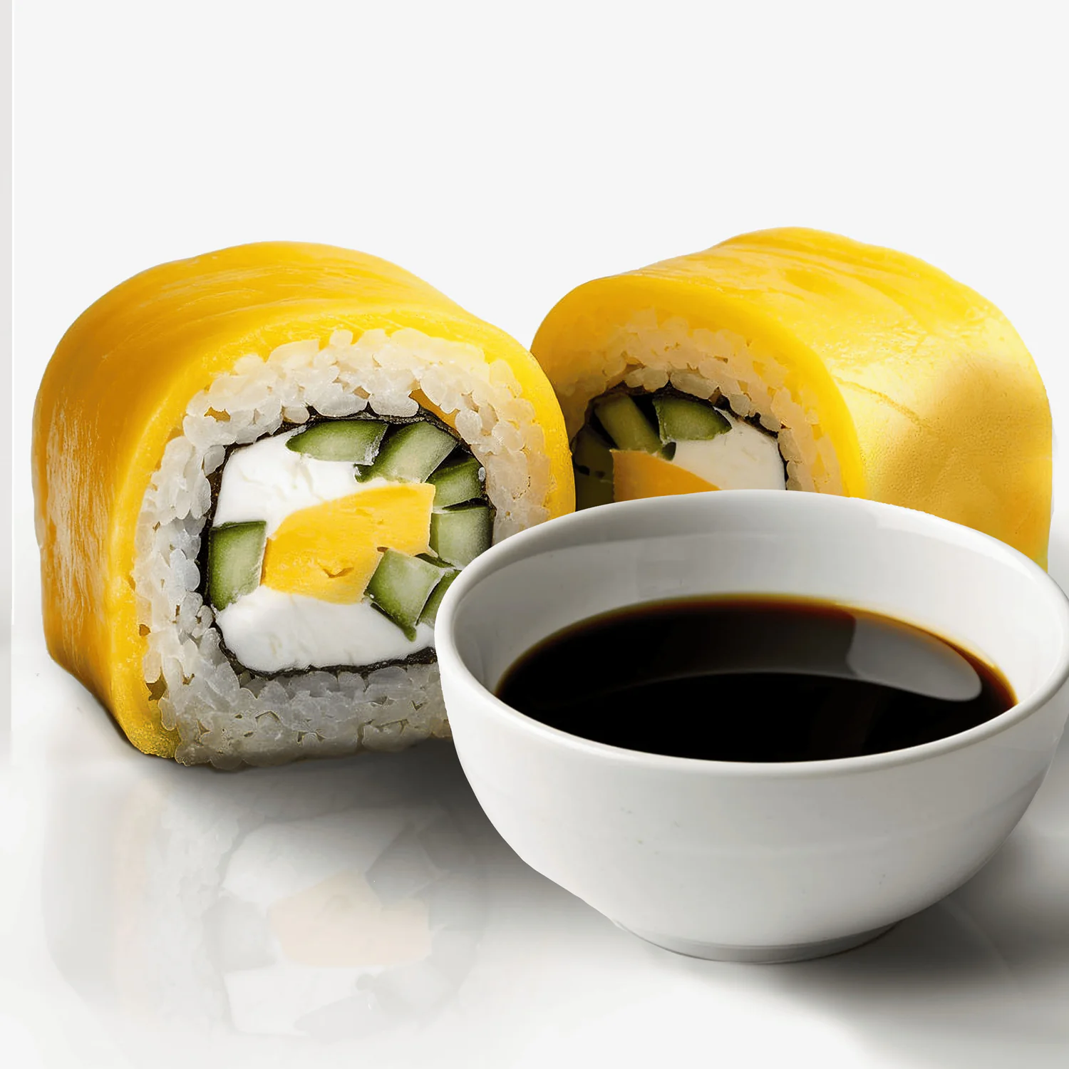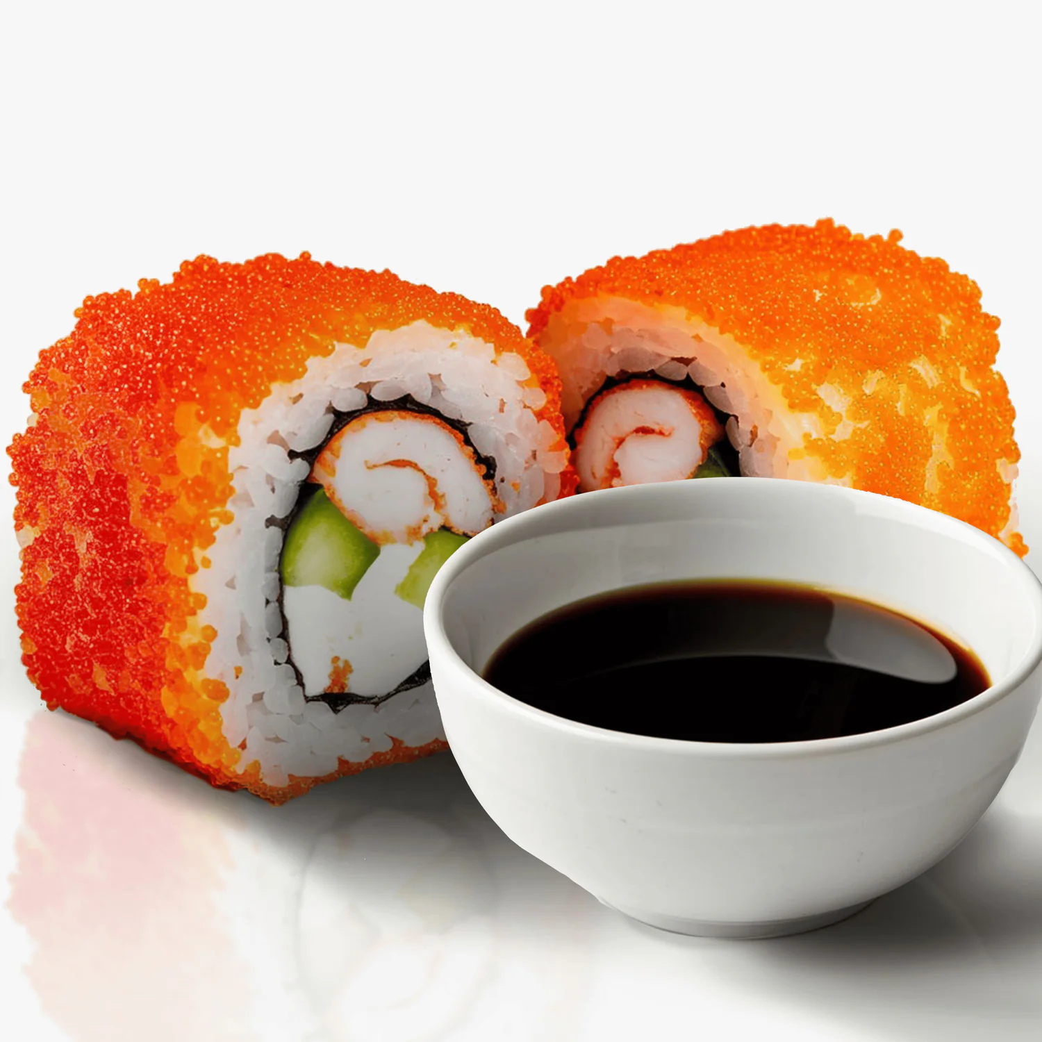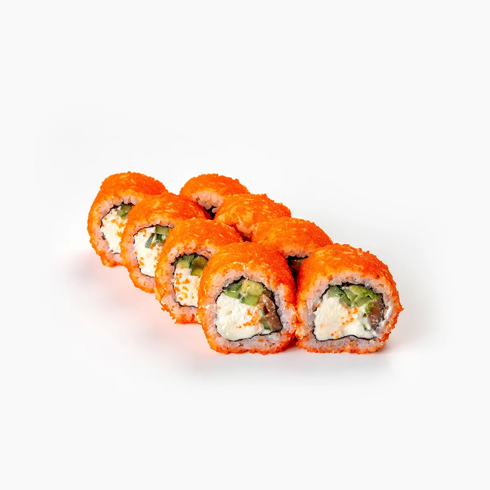 Имитация краба, тобико , дайкон маринованный, огурец, сливочный сыр