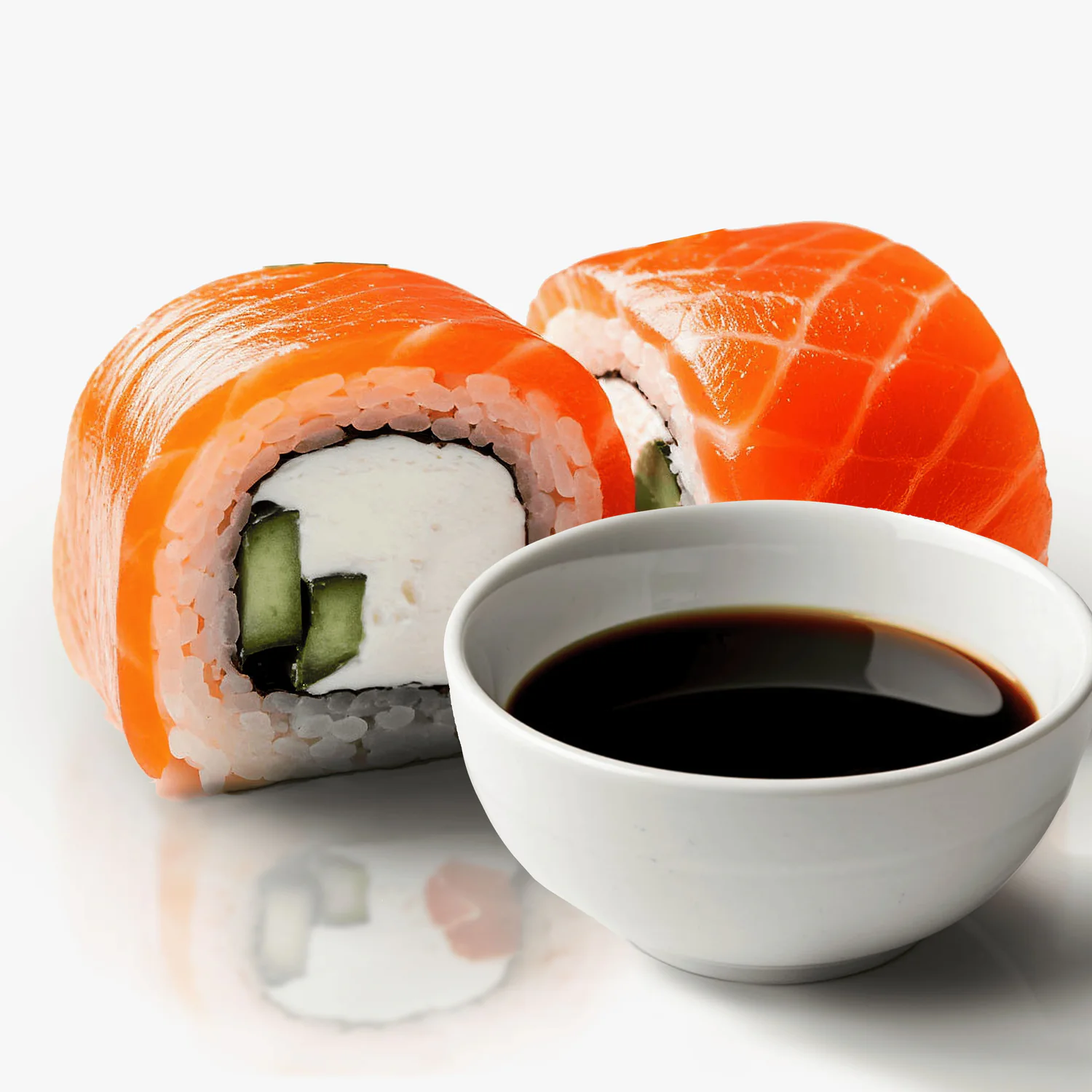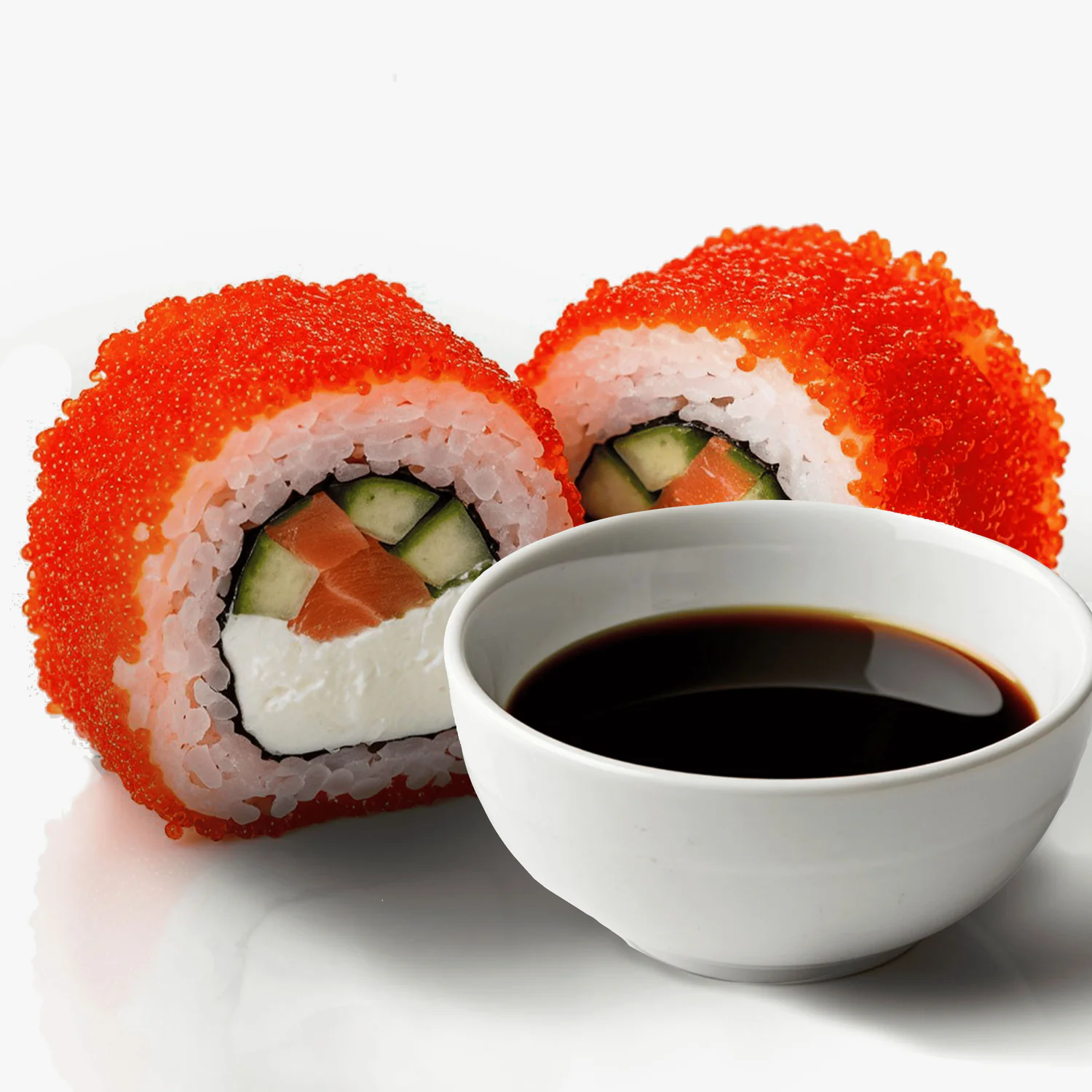 Лосось, тобико ,дайкон маринованный, огурец, сливочный сыр