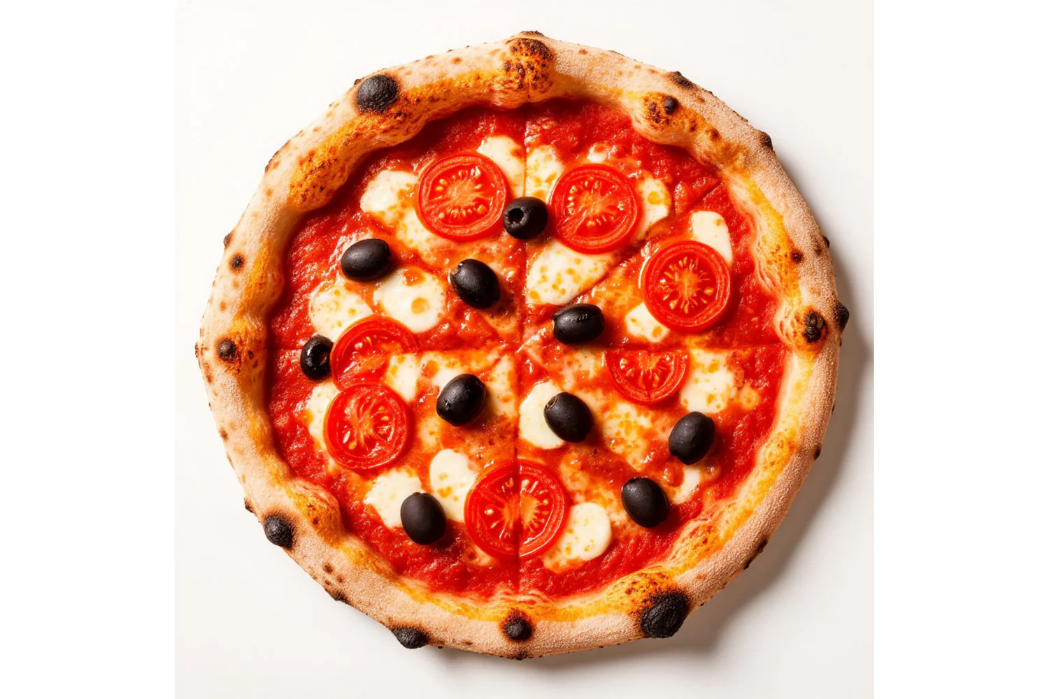 Неаполитанская пицца. Состав - моцарелла, помидоры, маслины. Фирменный соус.