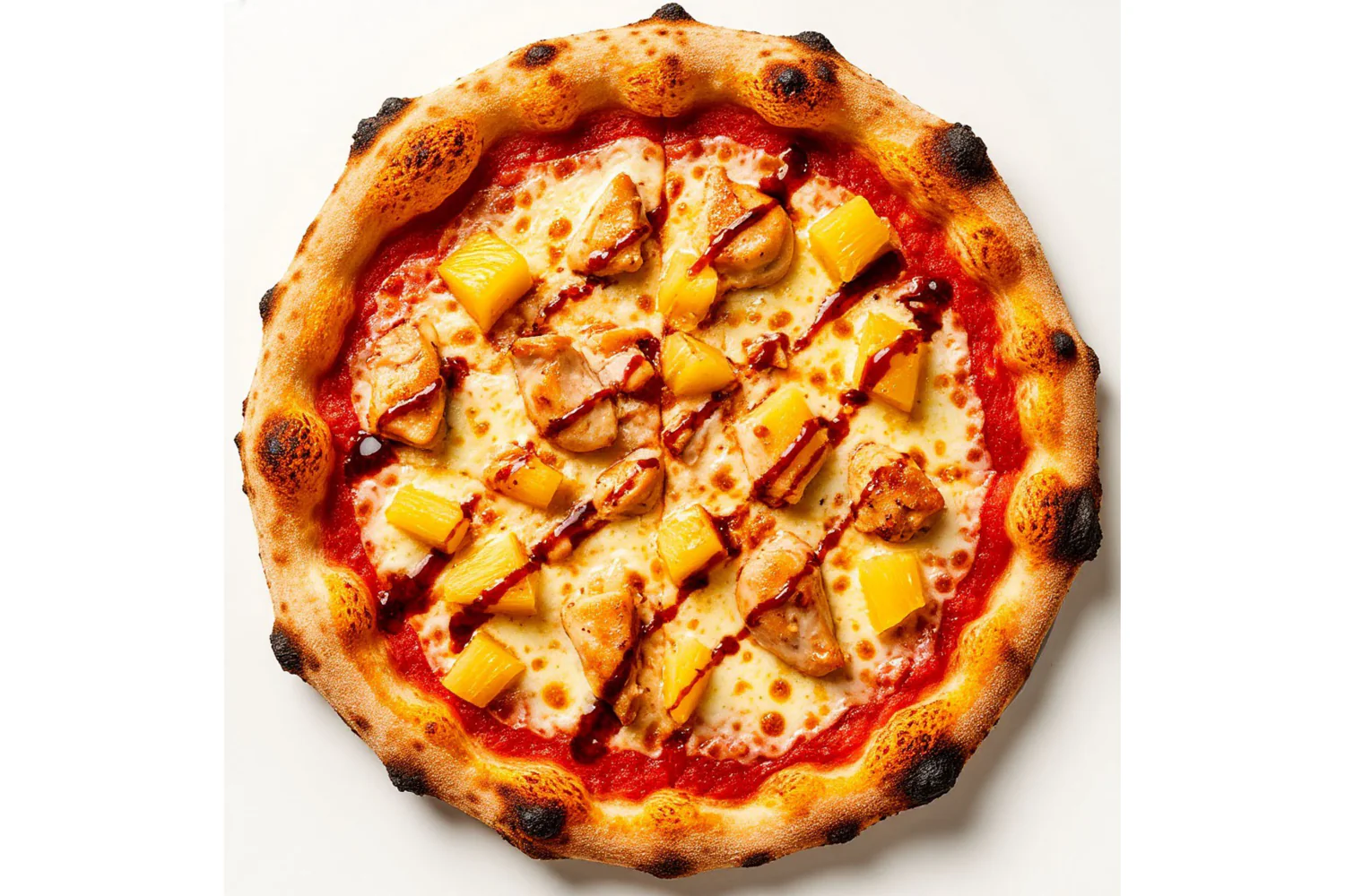 Неаполитанская пицца. Состав - моцарелла, куриное филе, ананасы, соус унаги. Диаметр пиццы 30 см.